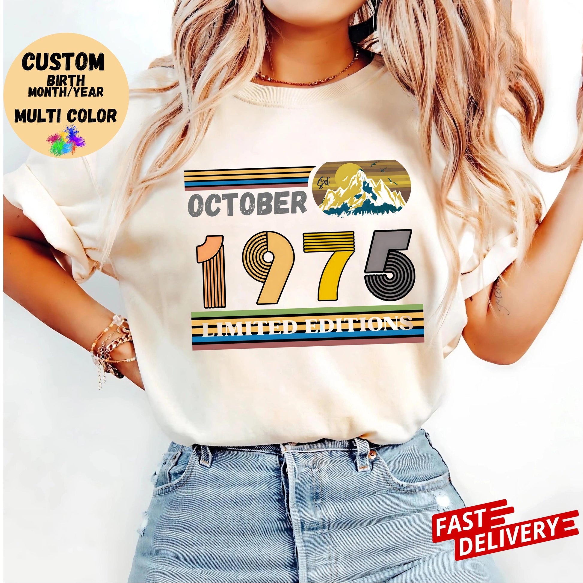 50th Birthday Retro Shirt, 1975 Birthday Sweatshirt Gift, 50 Years Bday Number Hoodie for Women / Men, Fifties Bday Tee For Wife Or Husband