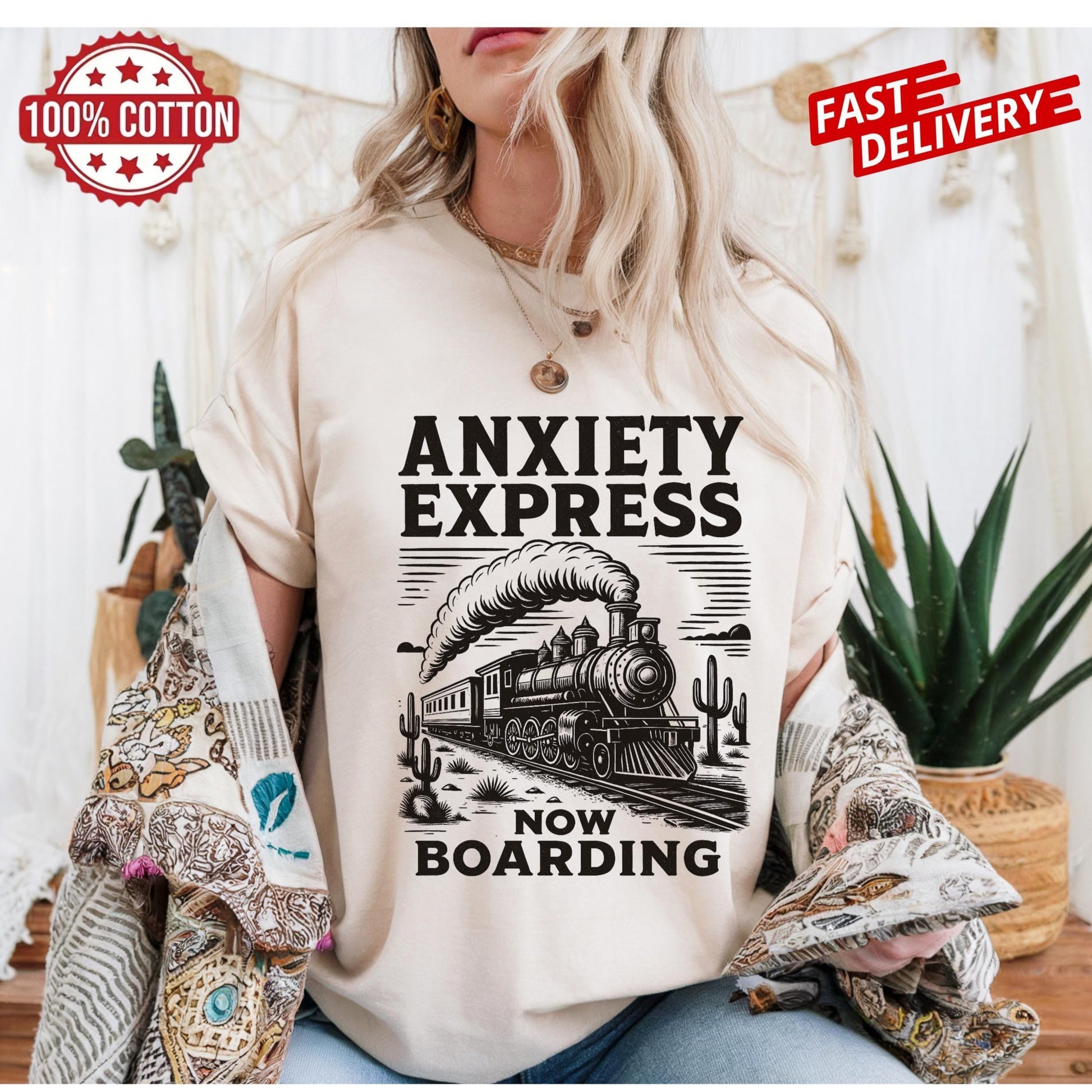 Anxiety Express panic train t-shirt, funny mental health quote shirt, oversized sarcastic gift idea for anxious adults