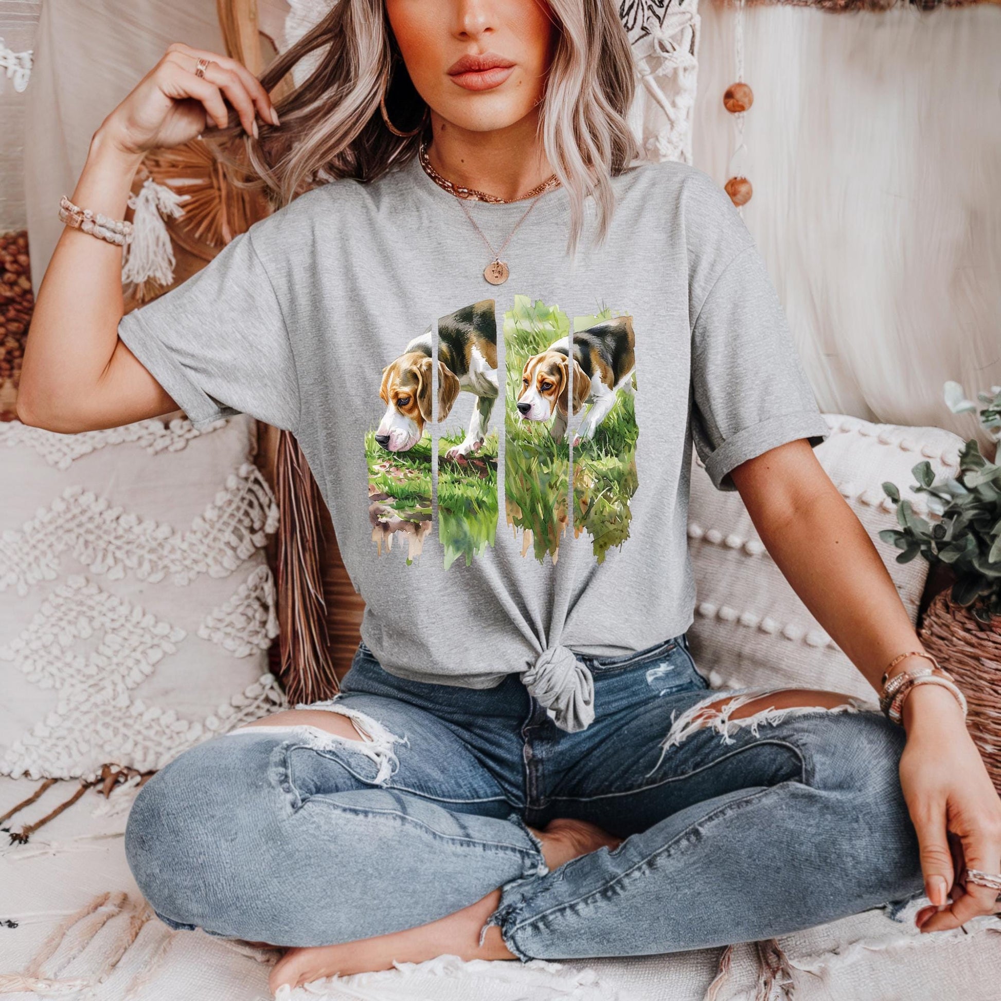 Beagle Reflection Unisex Heavy Cotton Tee, Dog Lover Gift, Pet Owner Apparel, Animal Lover Shirt, Casual Everyday Wear, Sniffing Dog Shirt