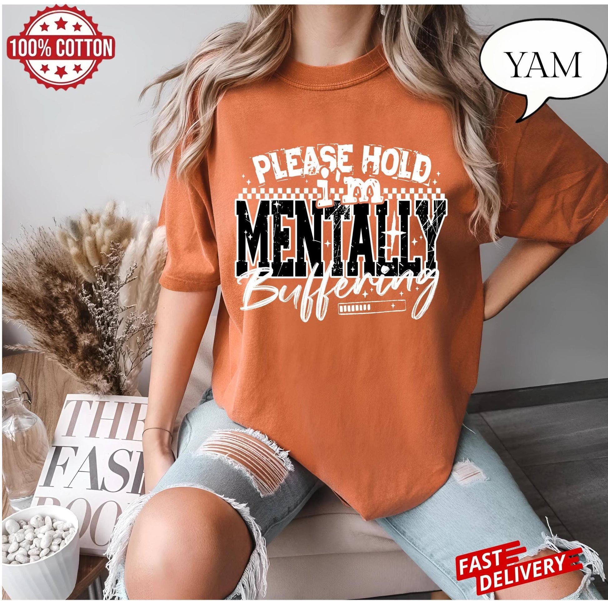 Buffering anxiety tee, sarcastic funny mental health shirt for introverts, oversized cotton quote t-shirt for overthinking and daily stress