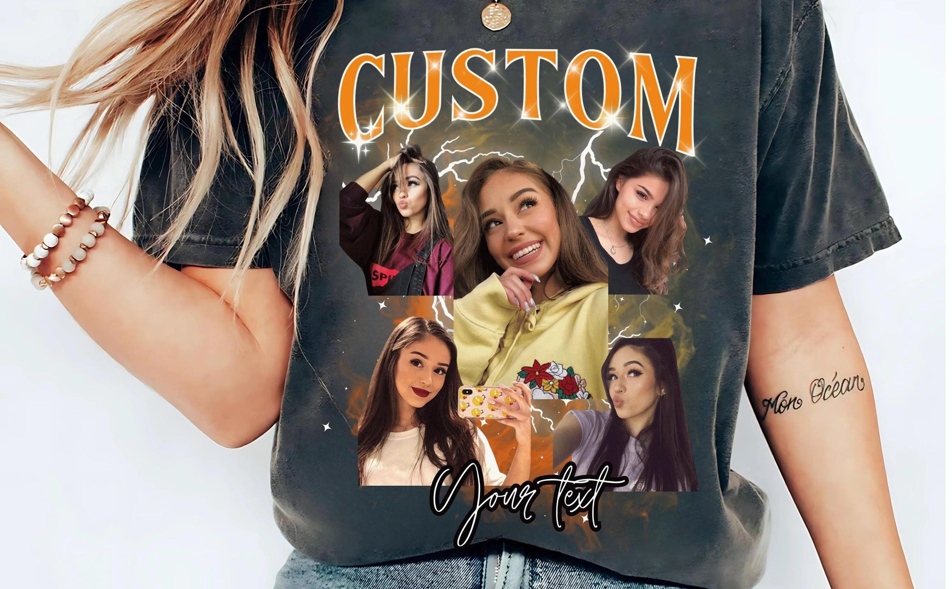 Custom Bootleg Tee Vintage 90s Graphic T Shirt Retro Rap Style Personalized Insert Your Photo Design Unique Outfit Custom Gift For Men Women