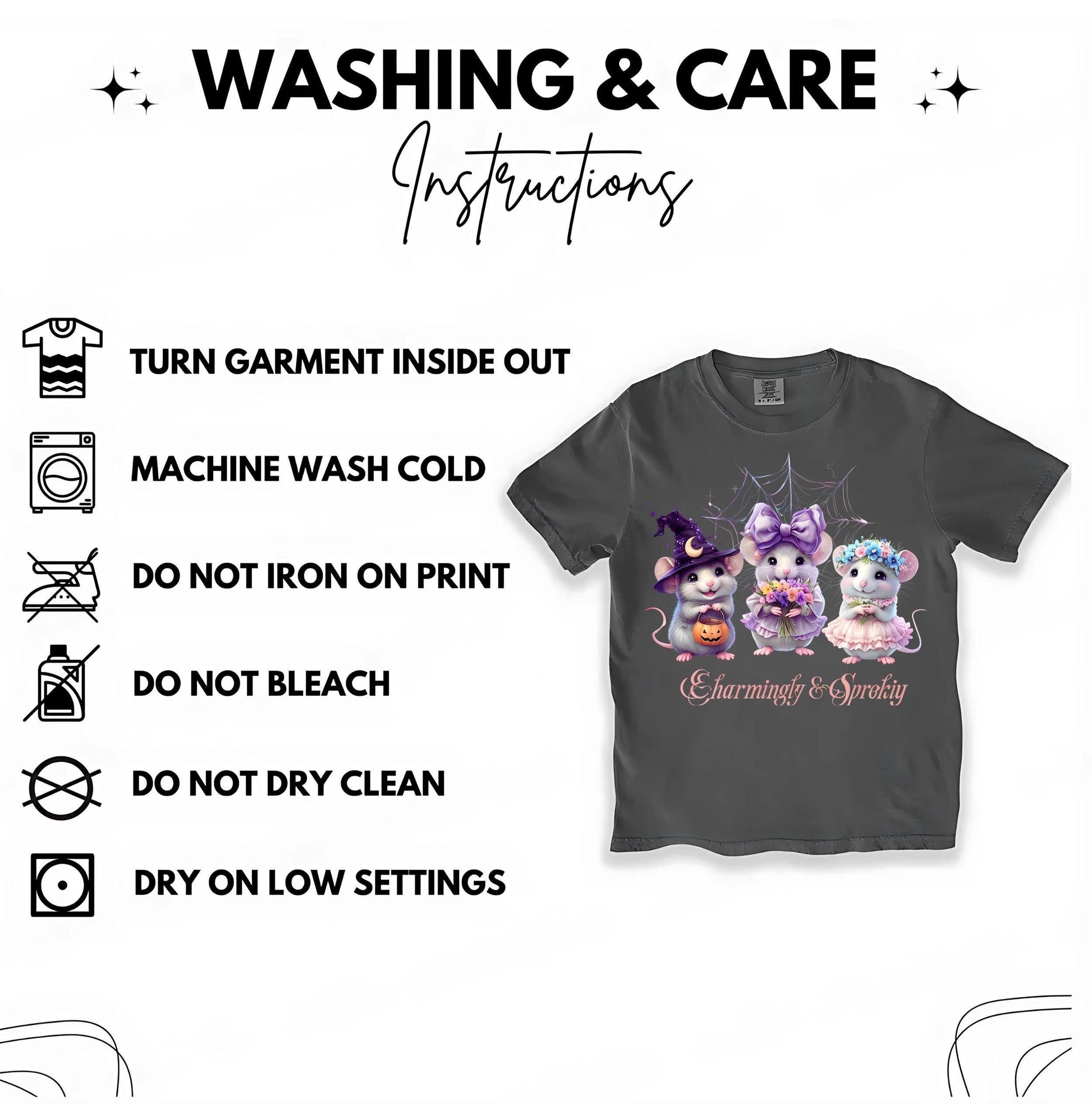 This cute Halloween mouse t-shirt is the perfect blend of spooky and kawaii fashion. Featuring an adorable trio of mice—a witch mouse with a pumpkin, a sweet mouse with a big bow, and a floral-crowned mouse—this women's Halloween graphic tee brings whimsical charm to your autumn wardrobe. Ideal for fall festival outfits, Halloween party shirts, or casual everyday looks.