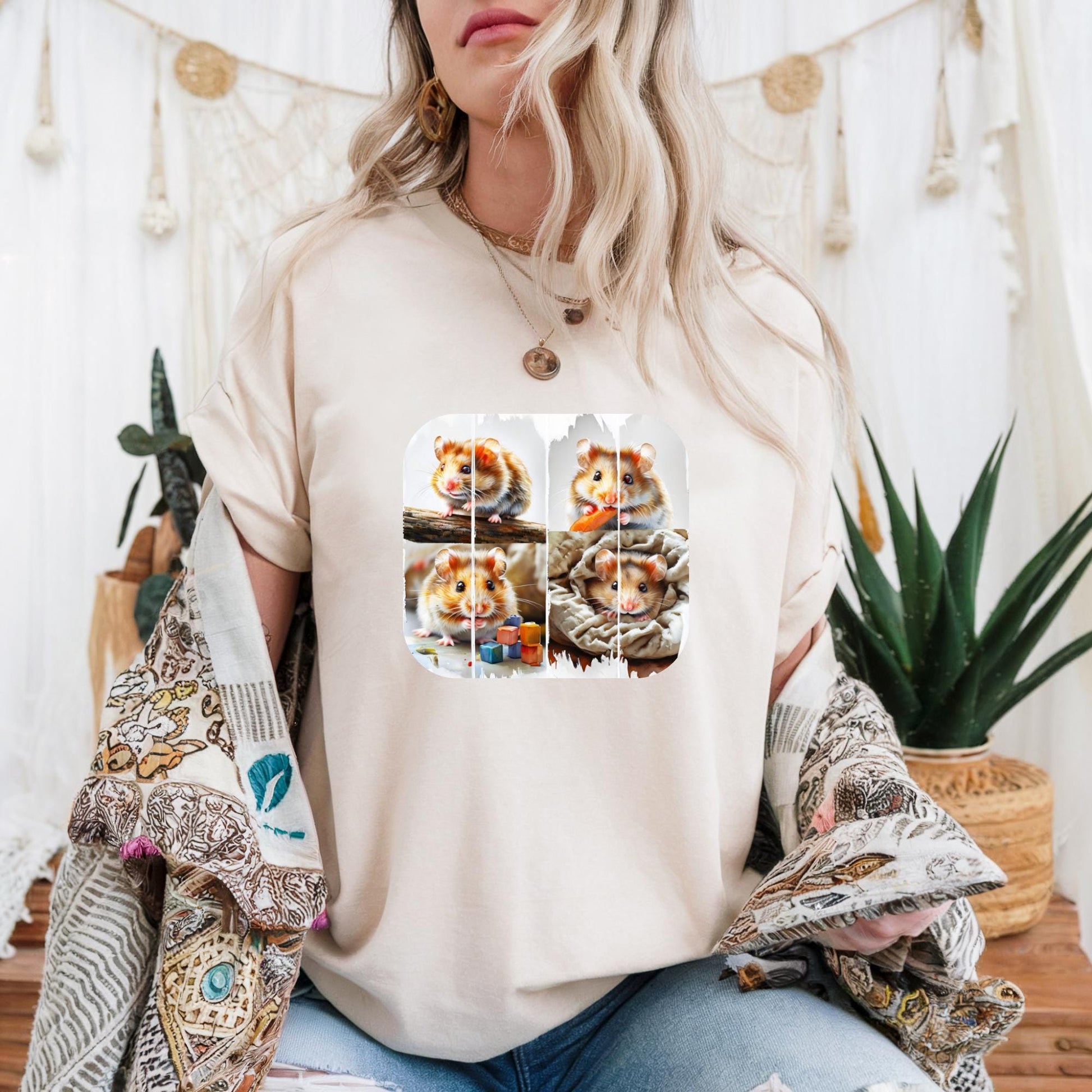 Brighten your day with this charming tee featuring four lovable hamsters 🐹 in playful and snuggly moments. Perfect for small pet lovers and anyone who adores these tiny bundles of joy!