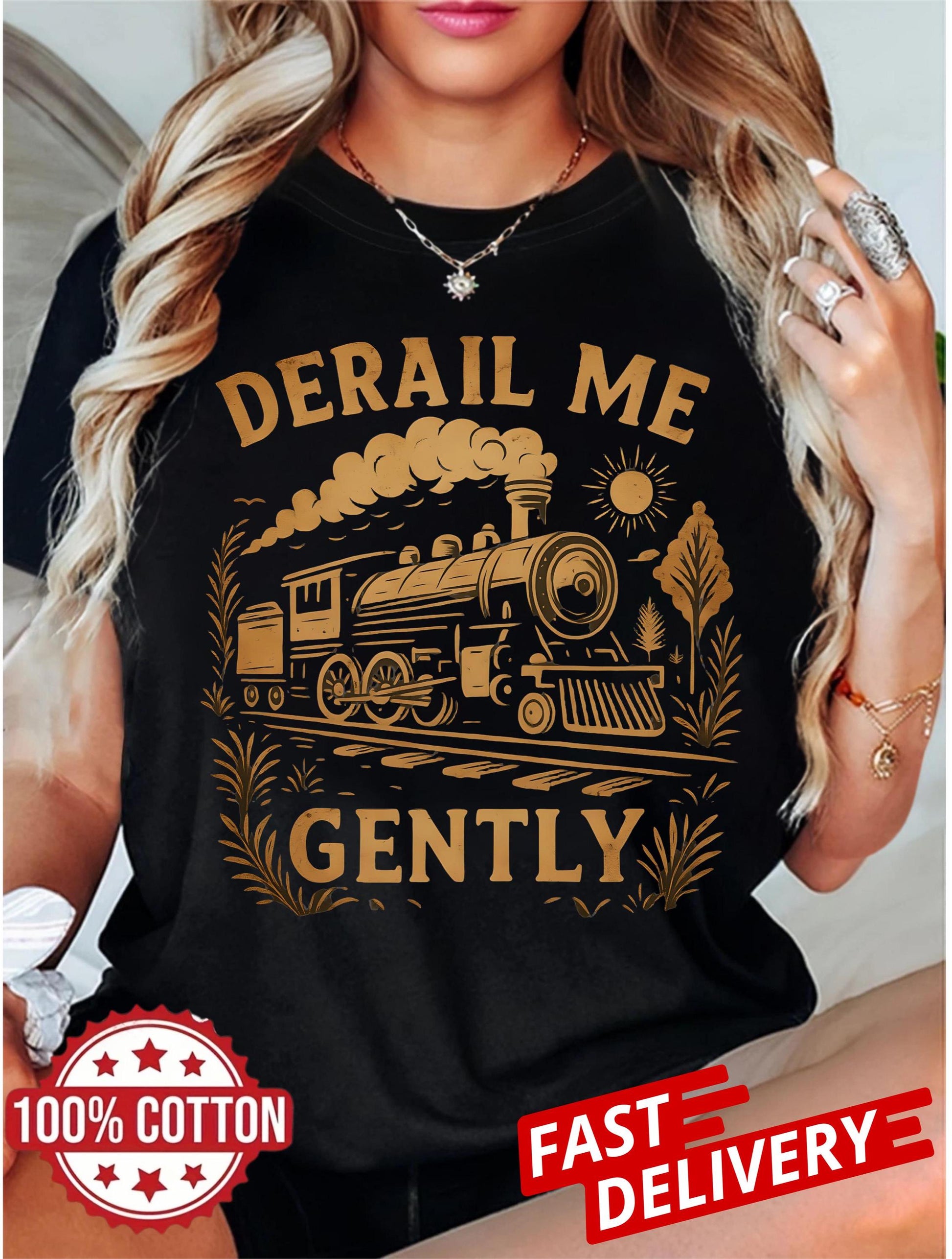 derail me gently locomotive tee with retro train illustration, soft cotton unisex shirt for adults who appreciate sarcastic gifts