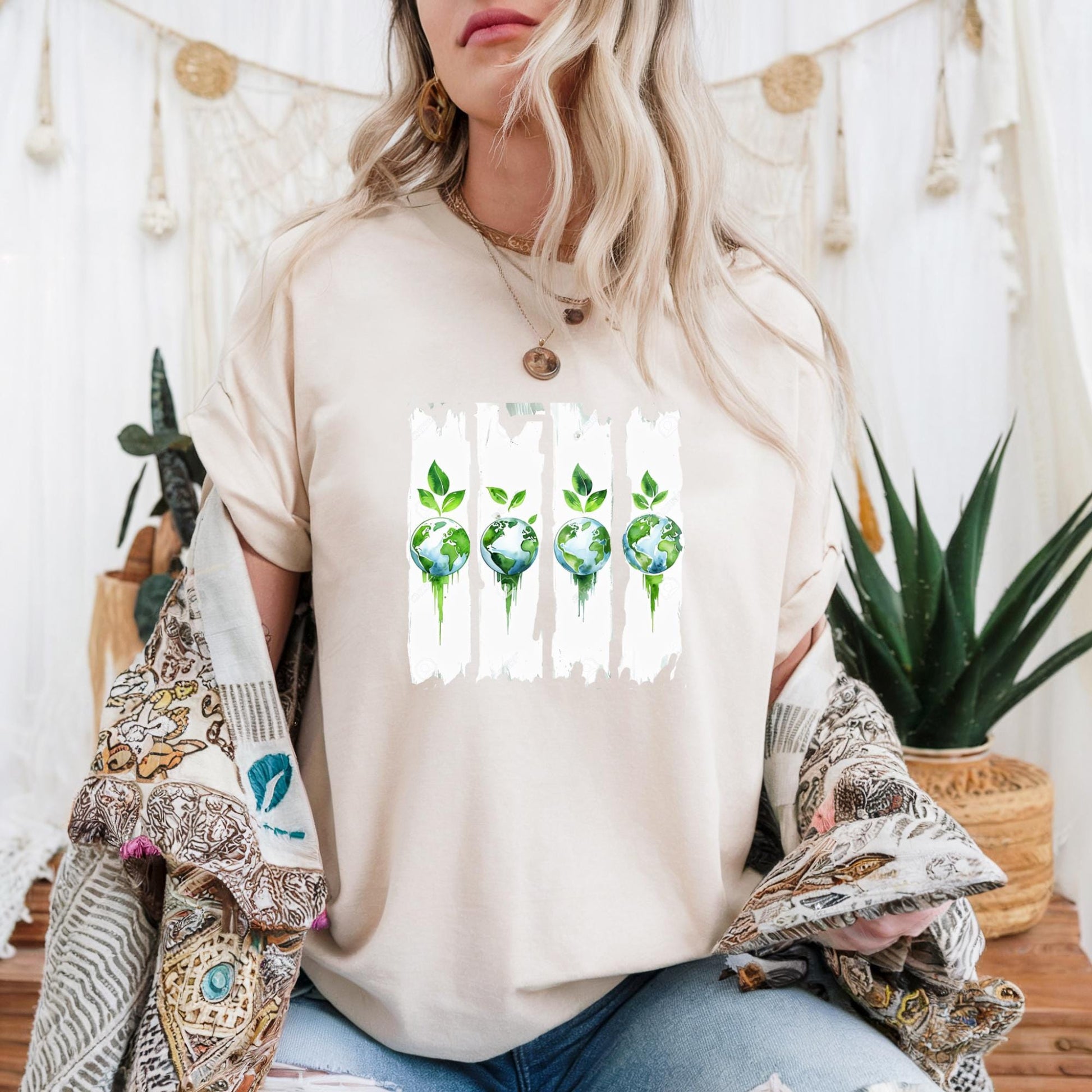 Eco-Friendly Earth & Green Leaves Graphic Tee: Sustainable Planet T-Shirt for Nature Lovers, Earth Day Gift, Eco-Conscious Apparel