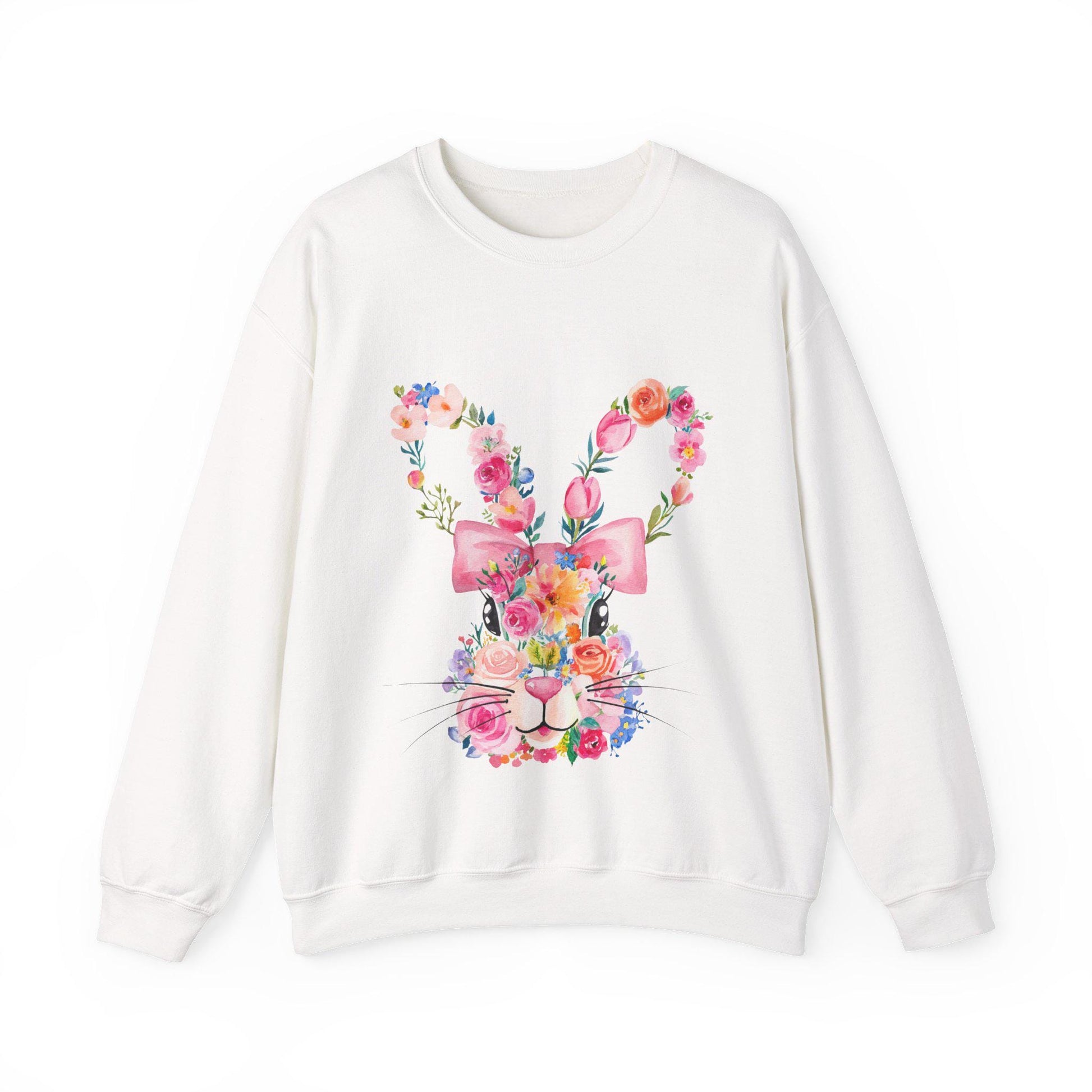 Floral Bunny Sweatshirt for Spring, Cute Easter Gift, Cozy Crewneck, Unisex Flower Sweatshirt, Casual Everyday Wear