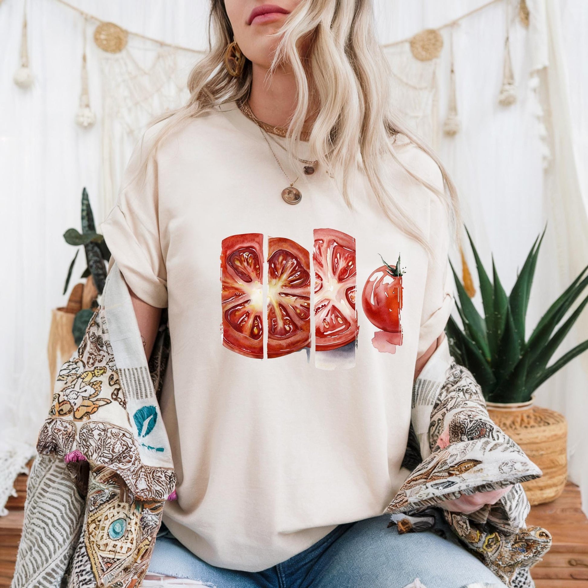 Freshly Cut Tomato Tee Unisex Cotton T Shirt Gardening Gift Vegan Style Casual Summer Wear Foodie Apparel Unique Gift For Men Women