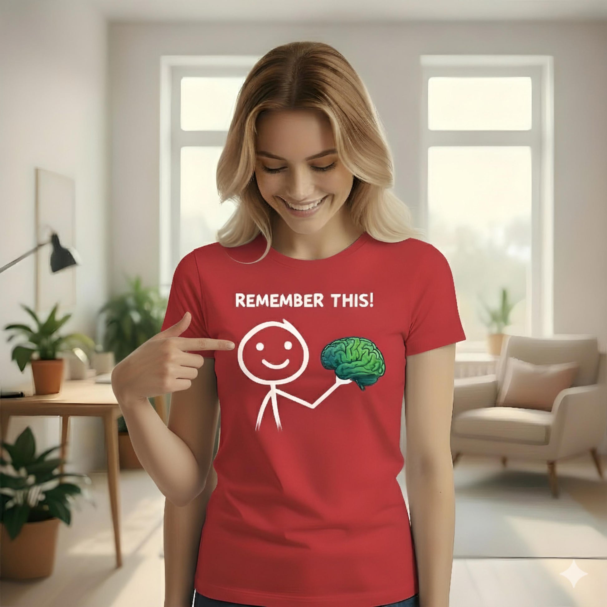 🧠 Funny Brain T Shirt — a witty graphic tee featuring a cartoon brain and “Remember This” slogan, perfect for casual wear and geek humor lovers 🤓👕