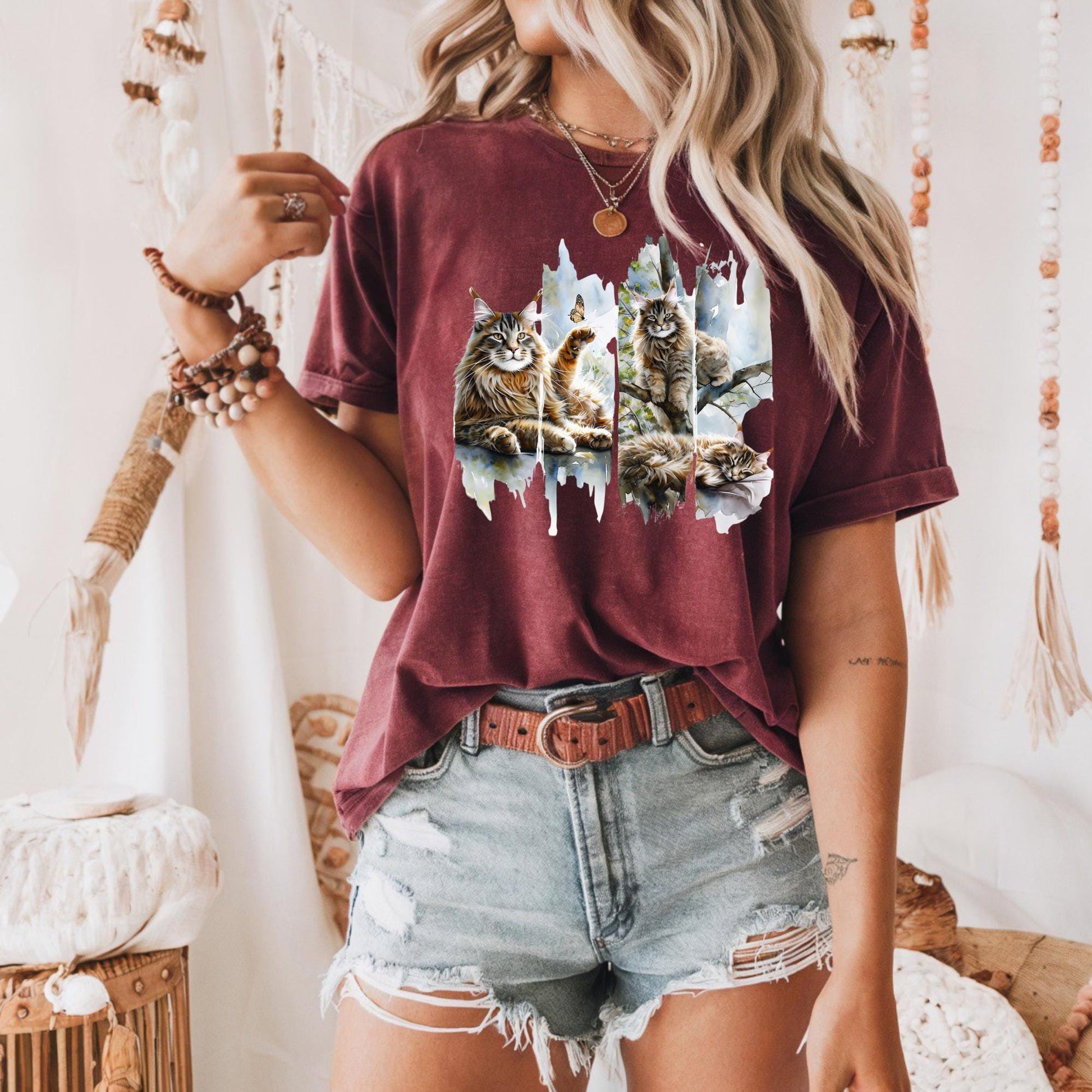 Majestic Maine Coon Cat Tee Whimsical Cat Art Heavy Cotton Tee Cat Lovers Gift Animal Print T Shirt Nature Art Tee Cozy Casual Wear
