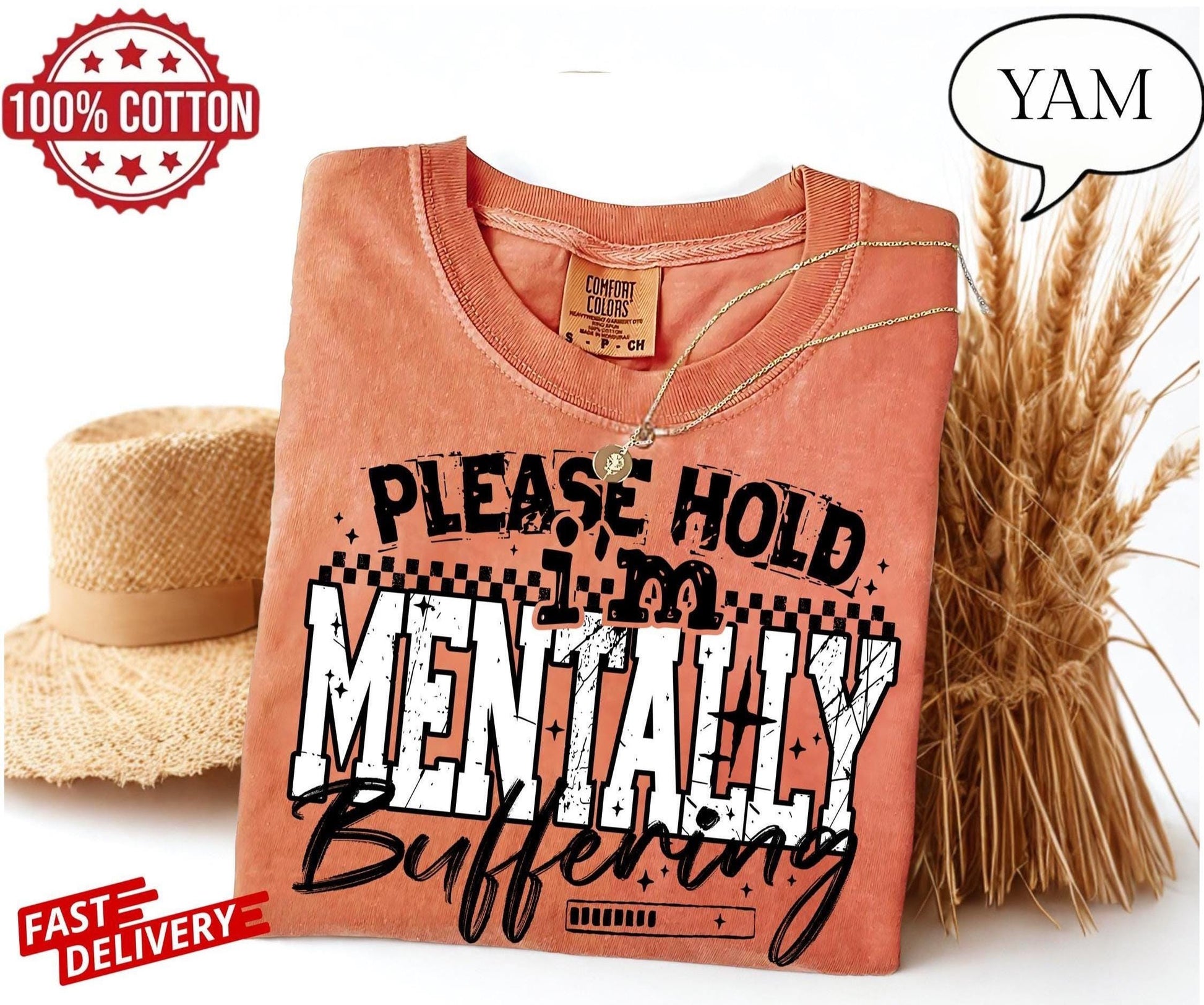Overthinking buffering shirt, introvert unisex oversized tee with sarcastic brain quote for mental lag days, stress relief and soft style